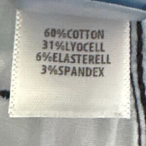 60% Cotton, 31% Lyocell, 6% Elasterell, 3% Spandex