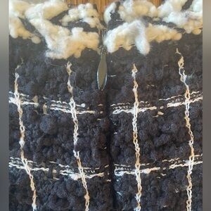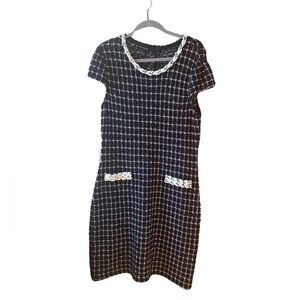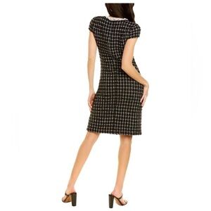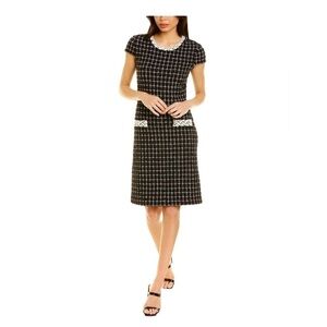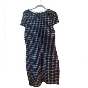 Chic checkered midi dress by St. John. Features short sleeves and a round neckline. Ideal for versatile styling.