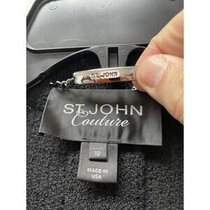 St John Couture Coat Womens Size 12 Black Sequin Knit Long Jacket Made in USA