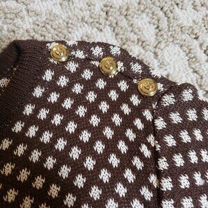St. John Coll VTG White Cocoa Brown Sweater in Classic Geometric Knit Pattern 10