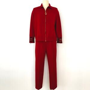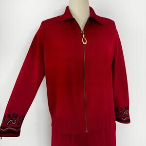 St. John Collection 2-Piece Knit Set Cardigan and Pants Red/Black | Size M and 4