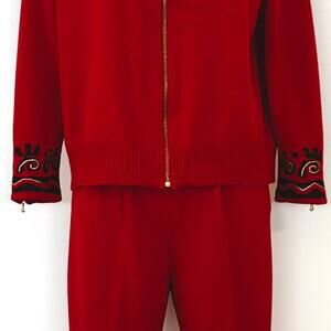 - Red/Black 2-piece matching set of pants and full zip sweater