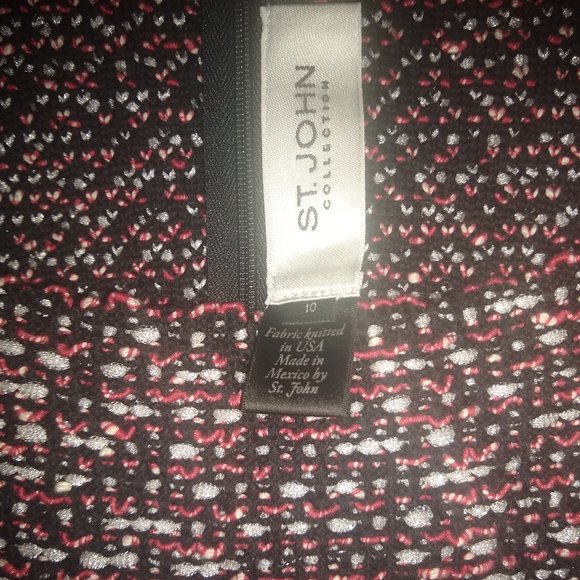Excellent condition/never worn St. John sleeveless dress. Classic St, John signature weave red, black, white pattern. This is a power dress! Wear to a meeting or important date you will be noticed! Size 10 hits slightly above the knee on person 5'5 height. All sales final/no returns, please.