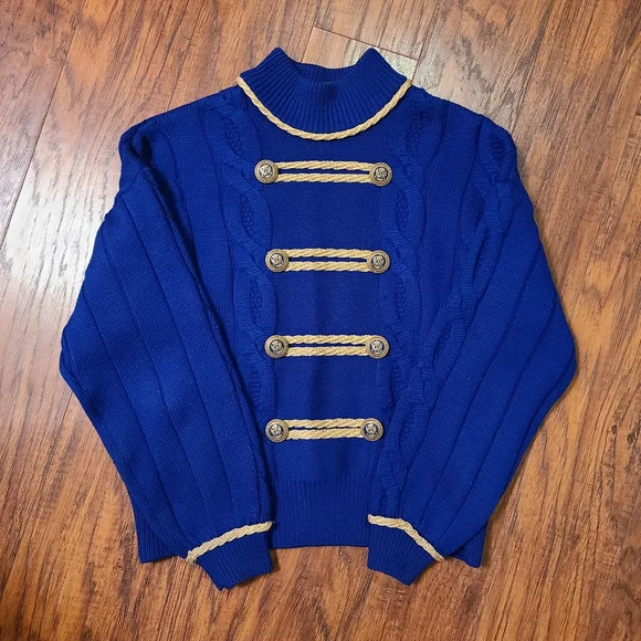 The perfect holiday sweater by St. John Collection by Marie Gray in excellent condition. The royal blue and gold color way is so festive and fun! Dress it up or down it's really beautifully made. Fits like a xs/small.