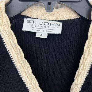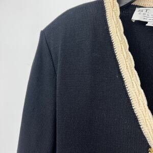 St John Collection Black Cream Trim Button Up Sweater Jacket Blazer Wool Blend 6