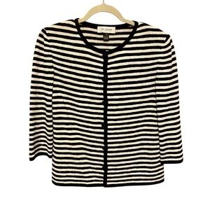 St. John Collection Black & Off White Striped Knit Sweater Button Up Cardigan or Jacket
