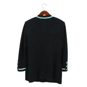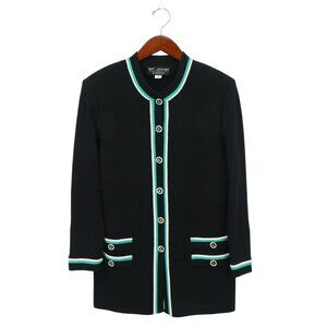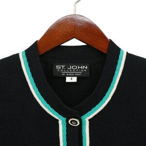 St. John Collection Black Teal Off-White Santana Knit Longline Jacket 8