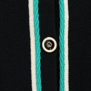 St. John Collection Black Teal Off-White Santana Knit Longline Jacket