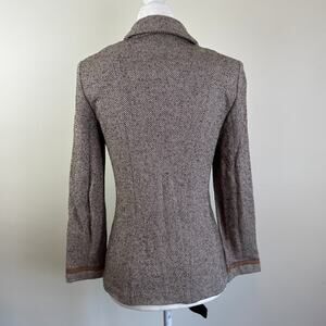 St. John Collection Blazer Jacket 4 S Chevron Wool Blend Brown Tan Unlined Zip