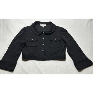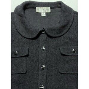 St. John Collection Bouclé Knit Cropped Jacket Made In USA Button Womens Size 12
