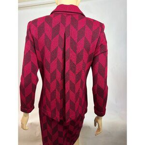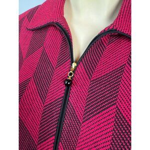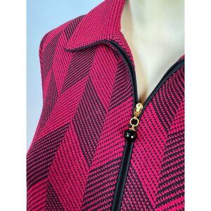 Step into a tale of timeless elegance with this St. John Collection jacket. The bold chevron pattern in pink and black weaves a story of sophistication, while the zip-up jacket ensures a harmonious balance of style and comfort.