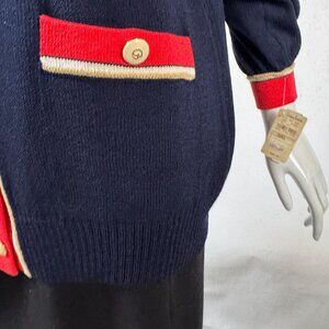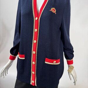 St. John Collection By Marie Gray Navy Cardigan With Red & Gold Trim S