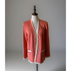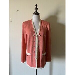 St John Collection By Marie Gray Santana Knit Suit Jacket Cardigan size 6 Coral