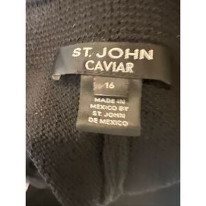 I picked up three gorgeous size 16 St. John pants on my last shopping trip and here they come! All in perfect condition with no flaws noted these are beautiful! These are the classic Santana knit pants, with an elastic waist made from a wool blend dry clean only. This pair is black, made in Mexico by St. John caviar.