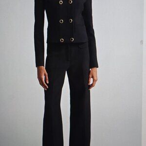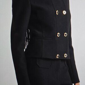 Signature statement buttons add a polished finishing touch to this double-breasted crop jacket tailored from stretch crepe.