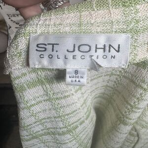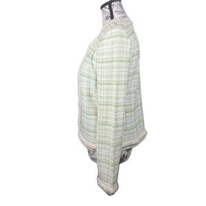 St. John Collection Green Knit Tweed Blazer Jacket Fringe Hem Single Clasp Sz 8