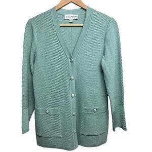 St. John Collection Green Ribbed Cardigan Sz. 6
