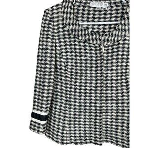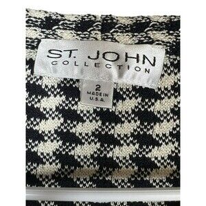 St. John Collection Houndstooth Knit Jacket Old Money Tweed Blazer Black White 2