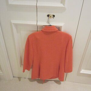 St John Collection Jacket. Color is zinnia (orange). The jacket has three quarter length sleeves with a four-button front closure with an extra button. There are also buttons next to the closure buttons to give it a double-breasted look. Brand new with tags.
