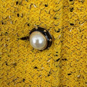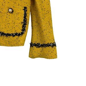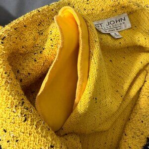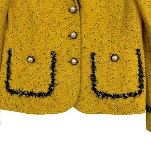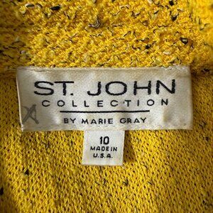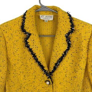 St. John Collection Jacket Women's 12 Yellow Tweed Blazer Pearl Button Pockets