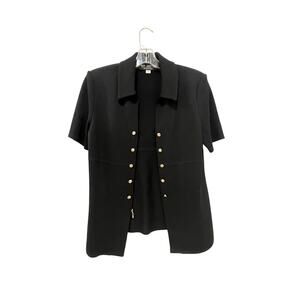 St John Collection Jacket Womens 8 Black Knit Short Sleeve Zip Gold Buttons