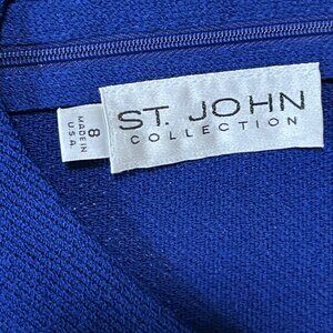 St John Collection Knit Blue Violet Women’s Size 8 Dress & Jacket Back Zipper Closure Slit Pleated Waistline Shoulder Pads EUC