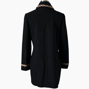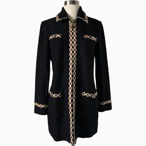 St. John Collection Jacket Black Size 8 Embellished Trim Knit Longline Blazer
