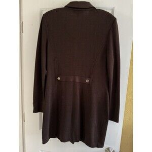 Set yourself apart in this beautiful, tailored and elegant St. John Collection knit suit with a long blazer and knee length skirt. The deep brown tone is so much softer than a harsh black, yet still gives you a slimming silhouette. The knit gives a little stretch for all day comfort.
