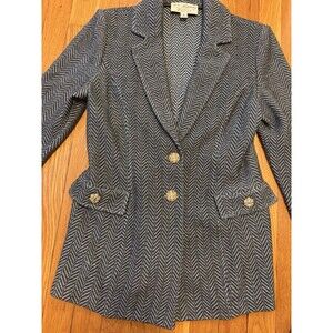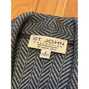 St. John Collection Knit Vintage Blue Black Herringbone Blazer Jacket Size 6
