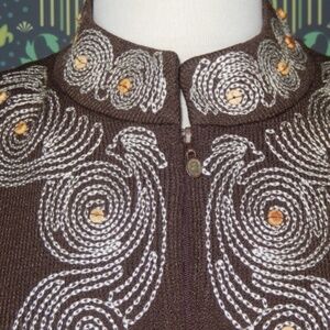 St. John Collection Knits Suit Jacket Brown Embroidered Zip Cardigan Sweater 8