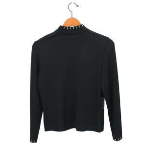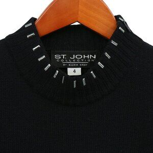 St. John Collection Leather Patch Studded Black Santana Knit Sweater 4