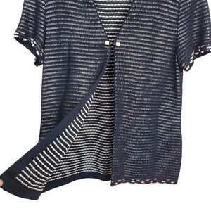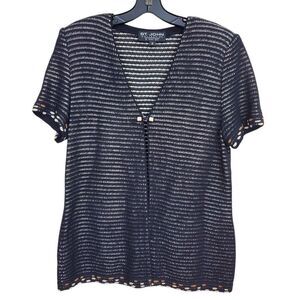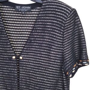 St John Collection Marie Gray Cardigan Sweater Size 10 Black Ivory Textured