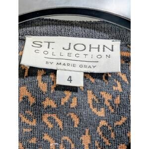 St John Collection Marie Gray Leopard Print Santana Knit Cardigan Jacket Size 4
