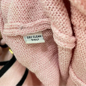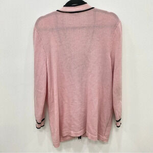 St. John Collection Marie Gray Pink Santana Knit Cardigan with black trim gold buttons Sz Small