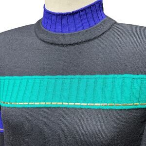 St. John Collection Marie Gray Sweater Black Purple Green Gold Medium