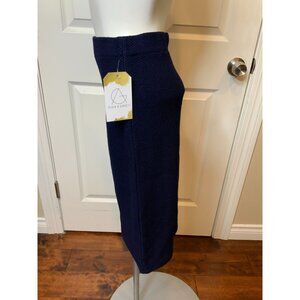 St. John Collection Navy Blue Knit Wool Blend Pencil Skirt Elastic Waist, Size 2