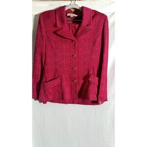 Elevate your professional wardrobe with the St. John Collection Pink Suit Set, a testament to classic elegance and modern sophistication. Tailored for the discerning woman, this set is a size 4, ensuring a comfortable and flattering fit for regular body types. The ensemble exudes a polished and put-together look, perfect for important meetings or upscale events.The suit set features a harmonious pink hue, lending a touch of femininity to traditional business attire. It's an ideal choice for those who appreciate the blend of style and functionality. The St. John brand is synonymous with quality and timeless design, making this suit set a versatile addition to any fashion-forward wardrobe.