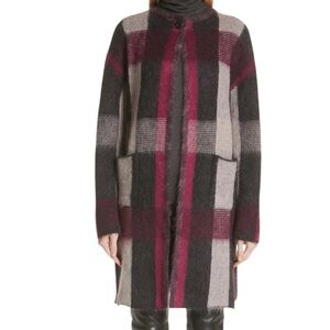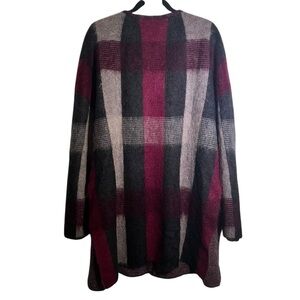 St John Collection Red Gray Brushed Line Plaid Sweater Jacket NWT XL