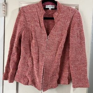 St. John Collection Red Tweed Boucle Zip Blazer 14