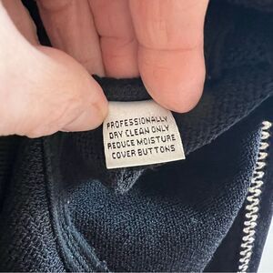 Add a touch of elegance to your wardrobe with this St. John Collection Santana knit jacket. The jacket features black and white trim, long sleeves, and a button closure. Perfect for formal or business occasions, this sweater jacket is suitable for any season – winter, summer, fall, or spring. The jacket is made of high-quality wool blend fabric and has a classic fit. The shoulder pads add structure and the knitted accents make it stand out. Dry clean only. This St. John Collection jacket is a must-have for any fashion-forward woman.
