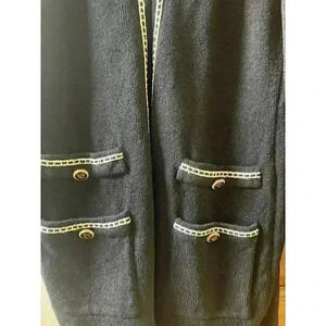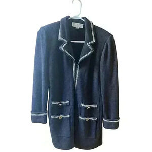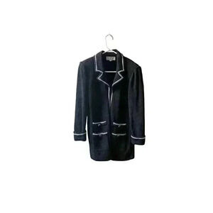 St. John Collection Santana Knit Black White Long Blazer Jacket Pockets Size 4