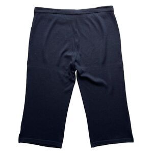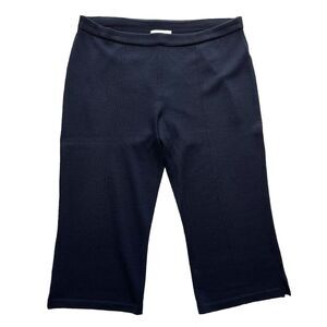 St John Collection Santana Knit Crop Pants Navy Pull On Elastic Waist Wide Leg