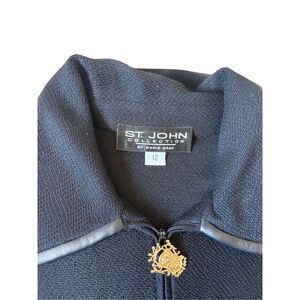 St. John Collection Santana Knit Jacket Blazer Women 12 L Black Zip