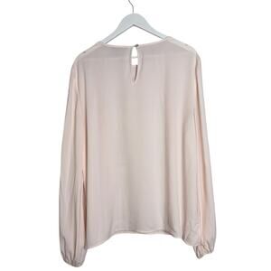 St. John Collection Satin Crepe Blush Pink Long Sleeve Ruffle Blouse Top Size XL