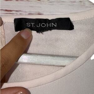 St. John Collection Satin Crepe Blush Pink Long Sleeve Ruffle Blouse Top