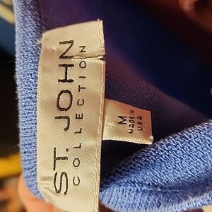 Fresh from the cleaners is this beautiful baby blue St John blouse and pant set.