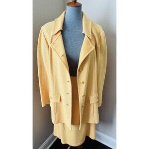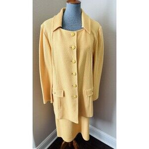 St. John Collection Size 16 Mustard Yellow Textured Jacket with Knit Skirt