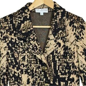 St. John Collection Size 4 Brown Beige Abstract Pattern Knit 3 Button Jacket