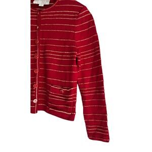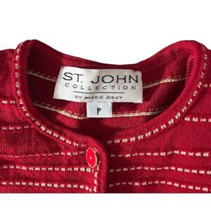 St. John Collection Size Petite Santana Knit Red & Gold Button Front Cardigan