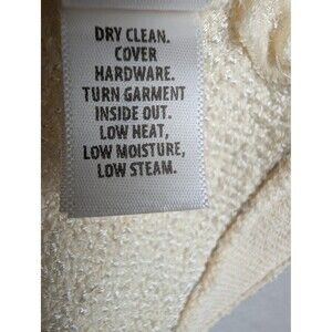 Care: Dry clean only; cover hardware, turn garment inside out, use low heat/moisture/steam
